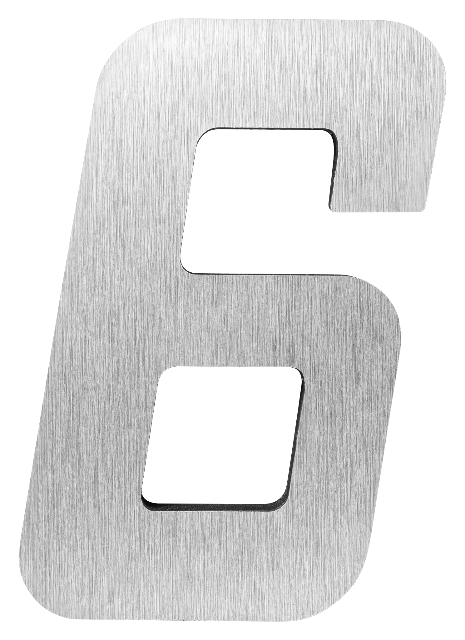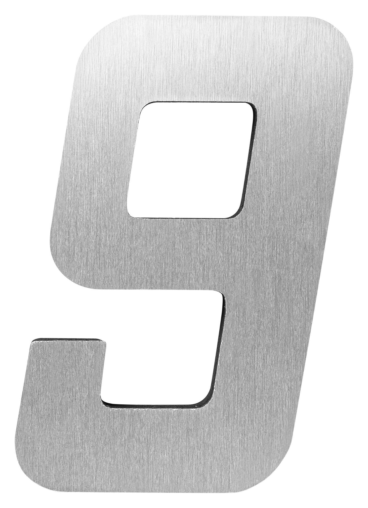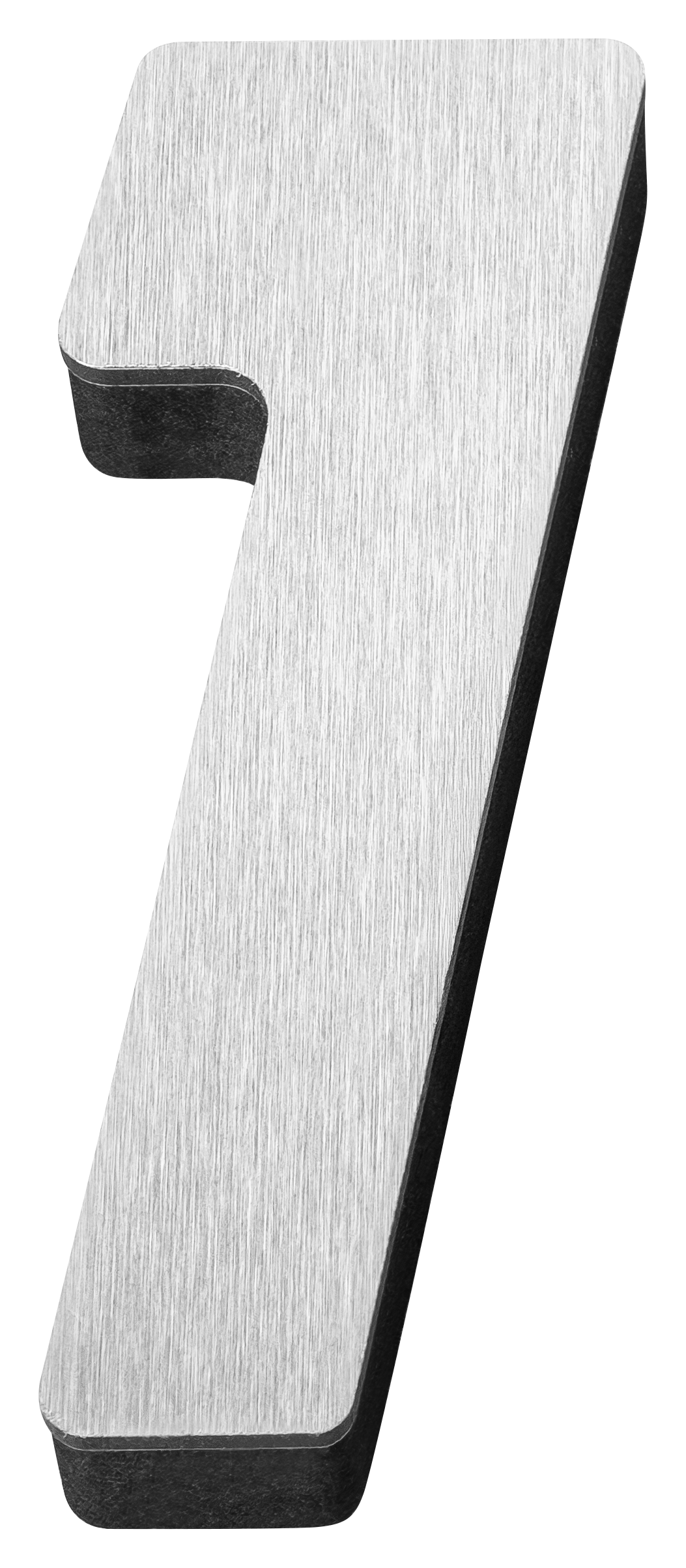 Residential number made of aluminum composite material (ACM) for indoor or outdoor use. It features transparent double-sided adhesive tape for wall mounting, eliminating the need for drilling or using tools during installation.