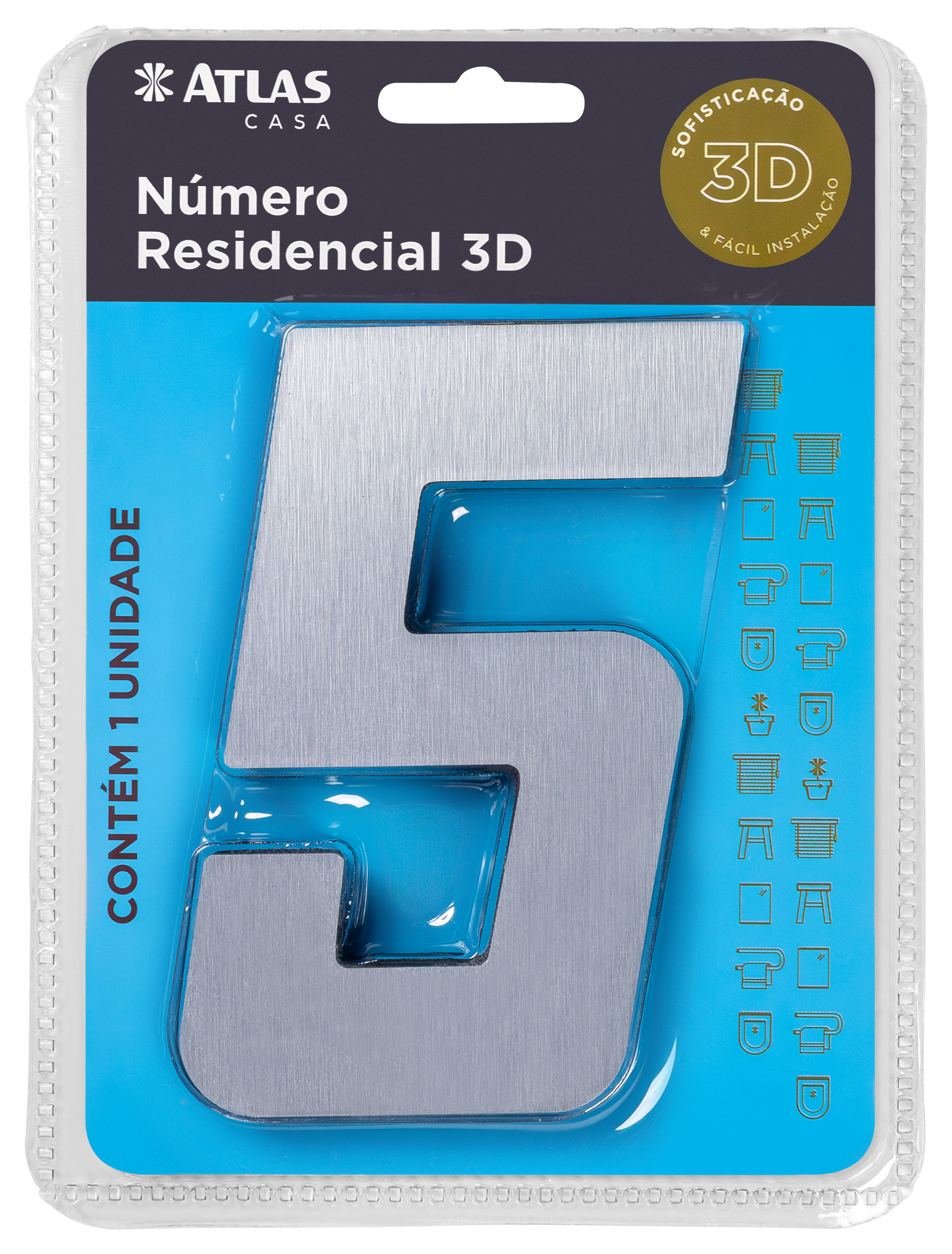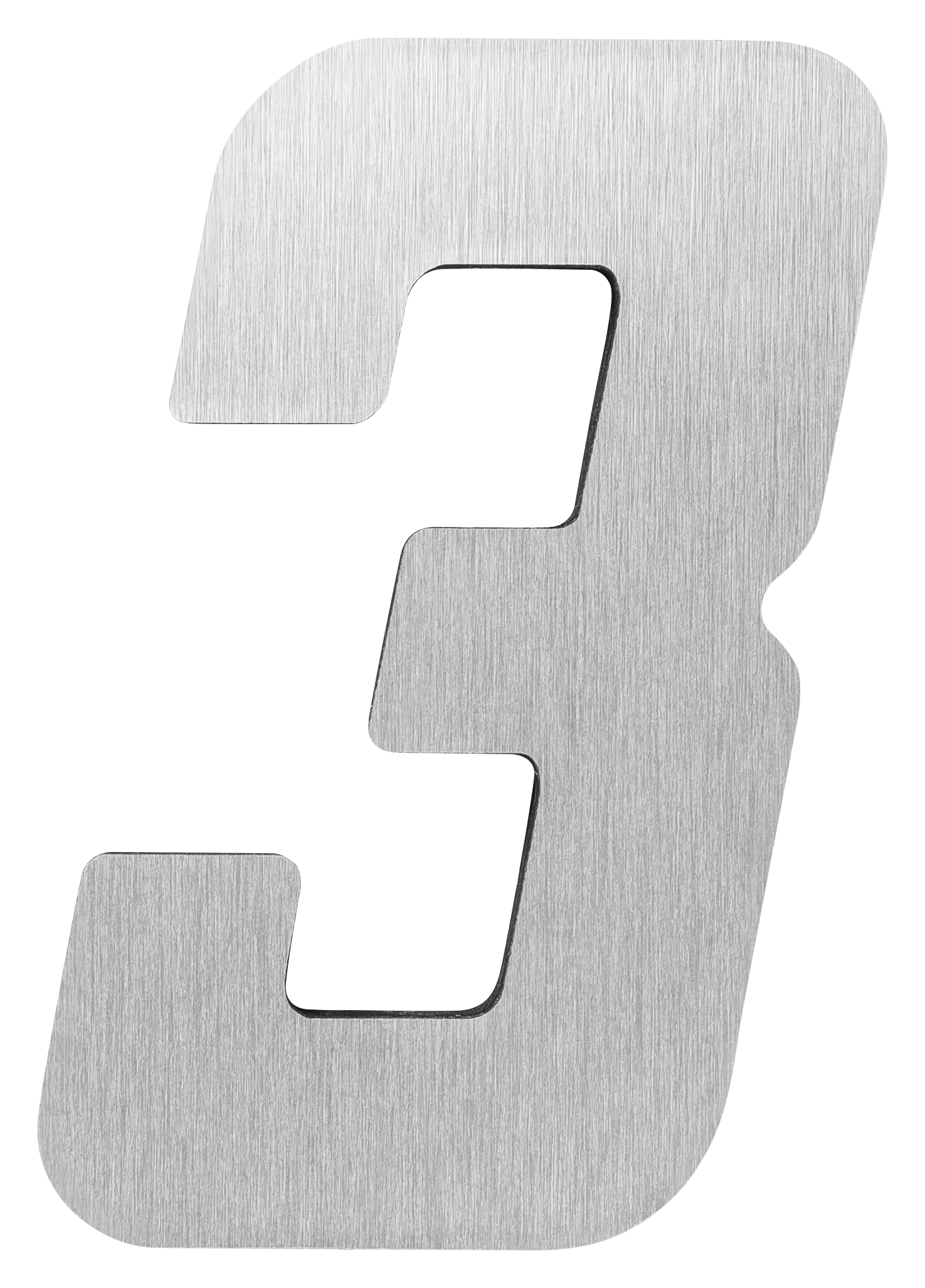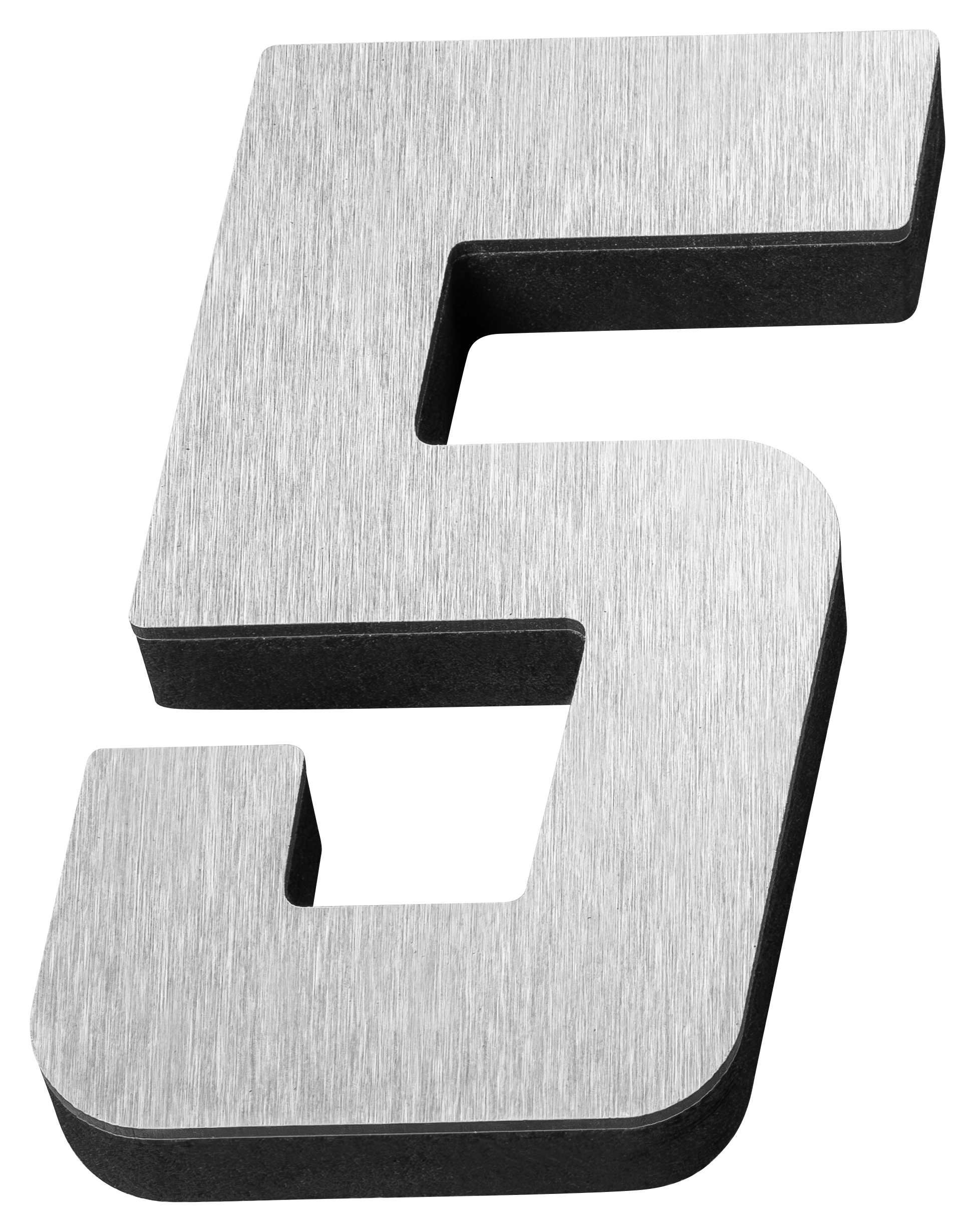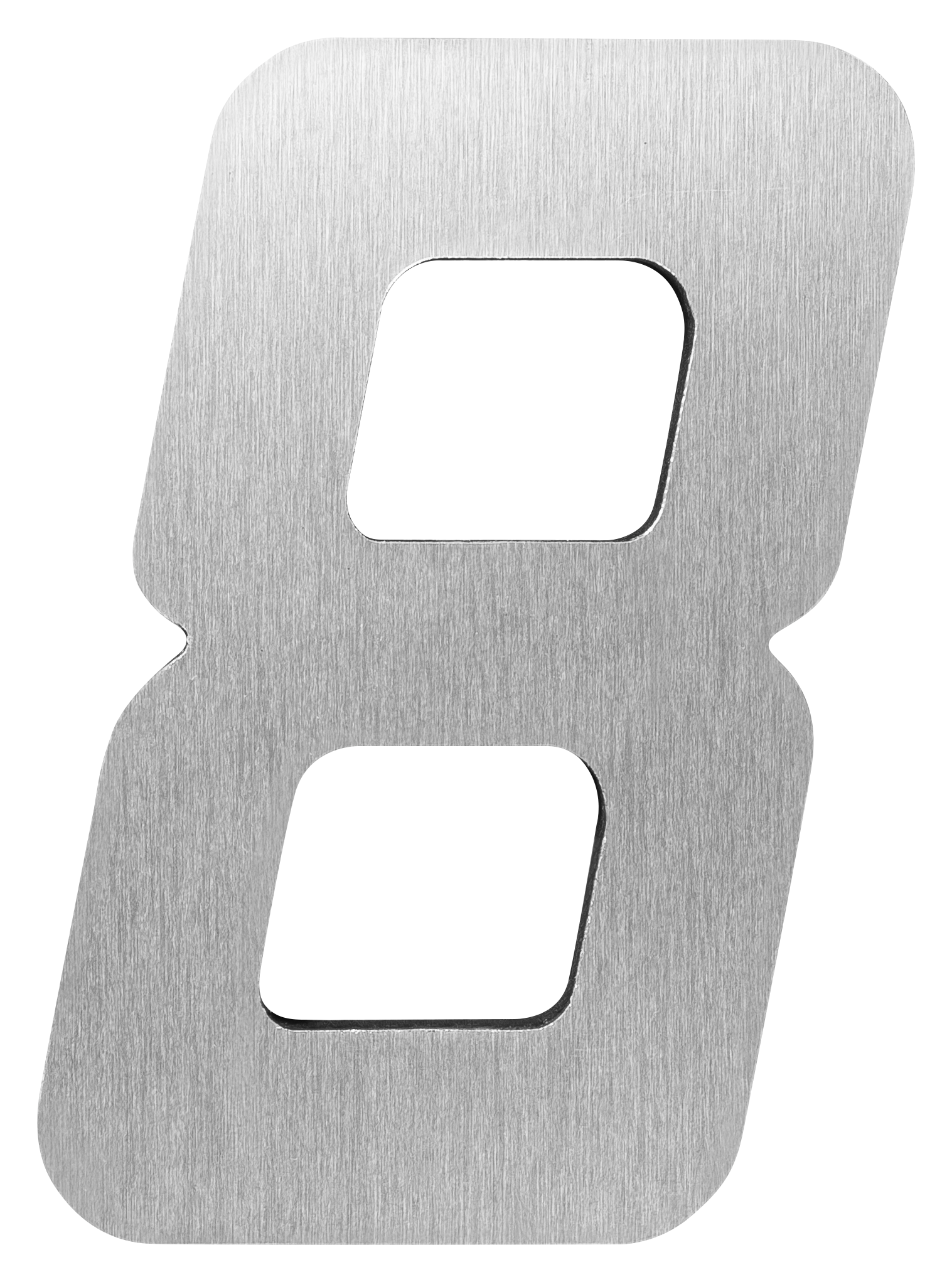 Residential number made of aluminum composite material (ACM) for indoor or outdoor use. It features transparent double-sided adhesive tape for wall mounting, eliminating the need for drilling or using tools during installation.